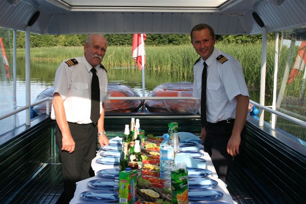 Zapraszamy Państwa na specjalne rejsy statkiem z możliwością przygotowania na pokładzie wielu znakomitych dań regionalnych (kartacze), biesiad rybnych oraz wyjątkowych kolacji na których podajemy między innymi pstrąga pieczonego w migdałach oraz zestaw ryb wędzonych - sławną wigierską sieję, sielawę a także pstrąga.